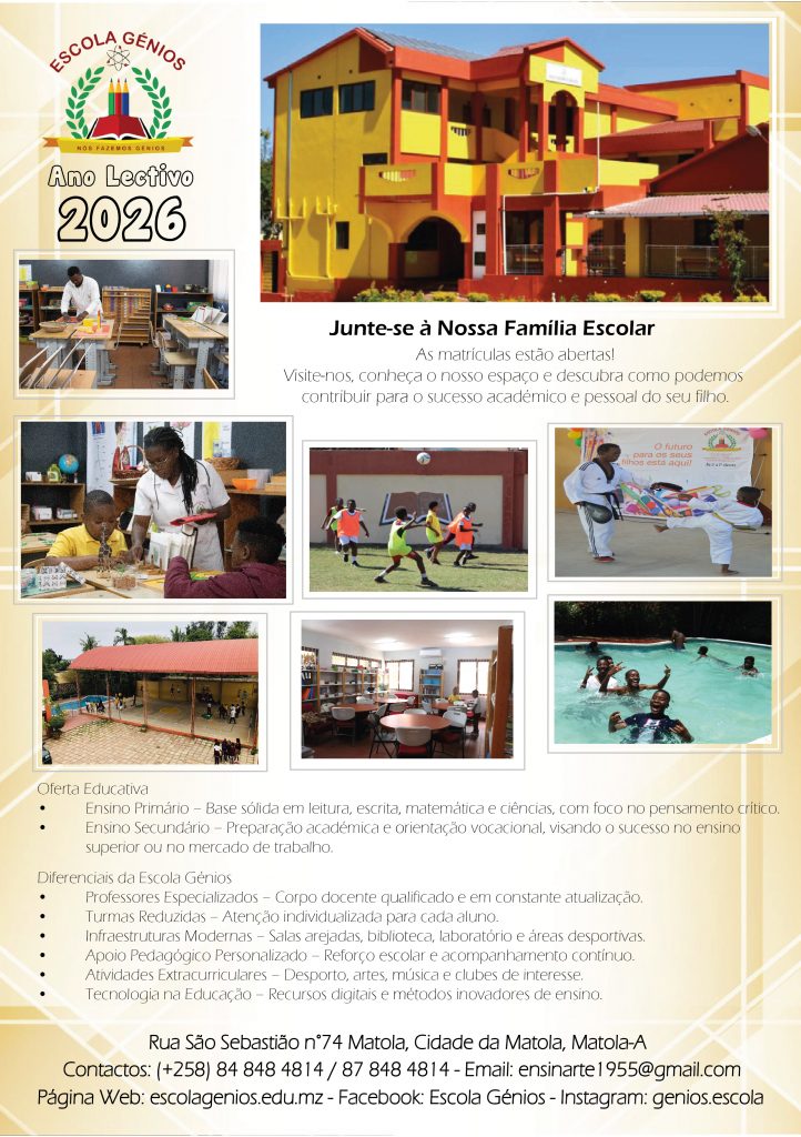 Já estão abertas as inscrições de novos ingressos para o ano lectivo de 2026 com vagas limitadas para todas as classes.